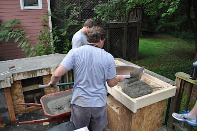 As you can see in the pictures, we are using basic brick pavers for the form of the pizza oven. Midway through the process my PapaJack brought up the subject of fire brick. We did some research and found two products that are commonly used in high temperature situations, fire brick and fire clay. Fire brick is a block while fire clay is a mortar set. However, neither of these products are carried by major home improvement stores (Home Depot, Lowes, Ace, etc.) but we found a local construction supply store that carried the fire clay. Because we had already purchased all the brick pavers from Home Depot we decided to proceed with the brick pavers to form the dome and planned to coat the entire inside and outside with the fire clay to ensure heat protection.